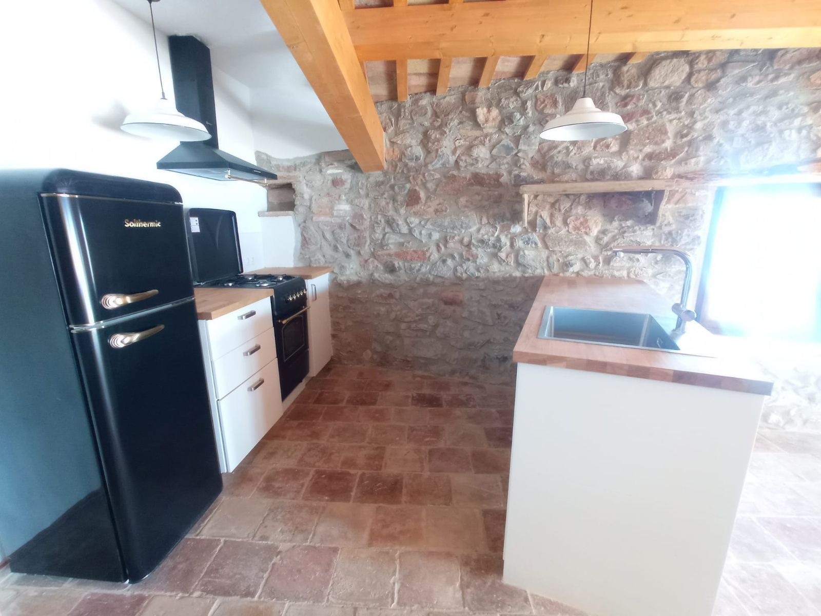 Preciosa Masia totalment restaurada i equipada amb mobles i electrodomèstics per estrenar, té 3 habitacions dobles, 2 banys amb plat de dutxa, cambra de rentar i petit desvan. Gran menjador amb entrada de llum natural amb grans finestrals, cuina americana equipada amb tots els electrodomèstics, calefacció de pellets, tancaments de fusta amb doble vidre. Perfecte per caps de setmana o primera vivenda, dins al poble de l'estany en plena natura i amb molt d'encant.